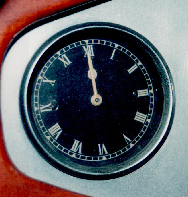 A Swiss-made Jaeger clock, 60mm diameter. This has arabic numerals (the FWD cars seem to have had roman numerals). |