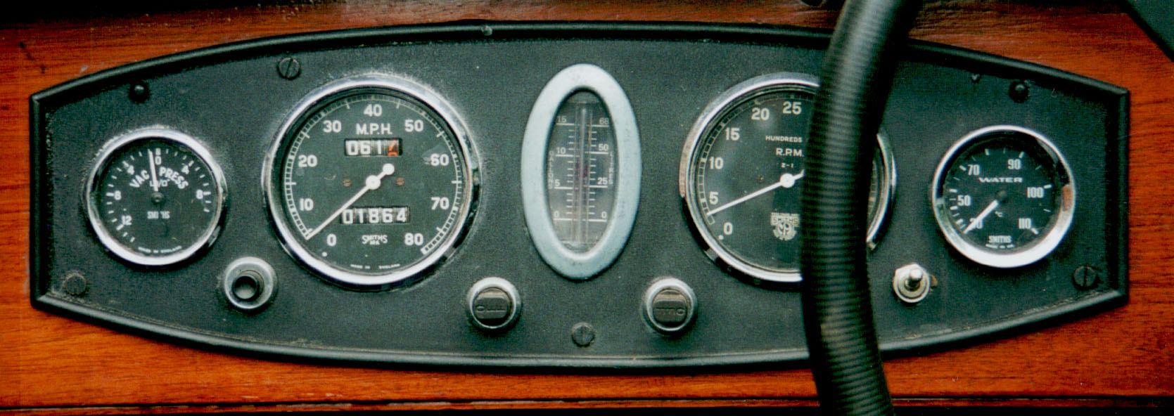 speedometer; 80mm 6000 rpm rev counter; 60mm oil pressure gauge, usually reading