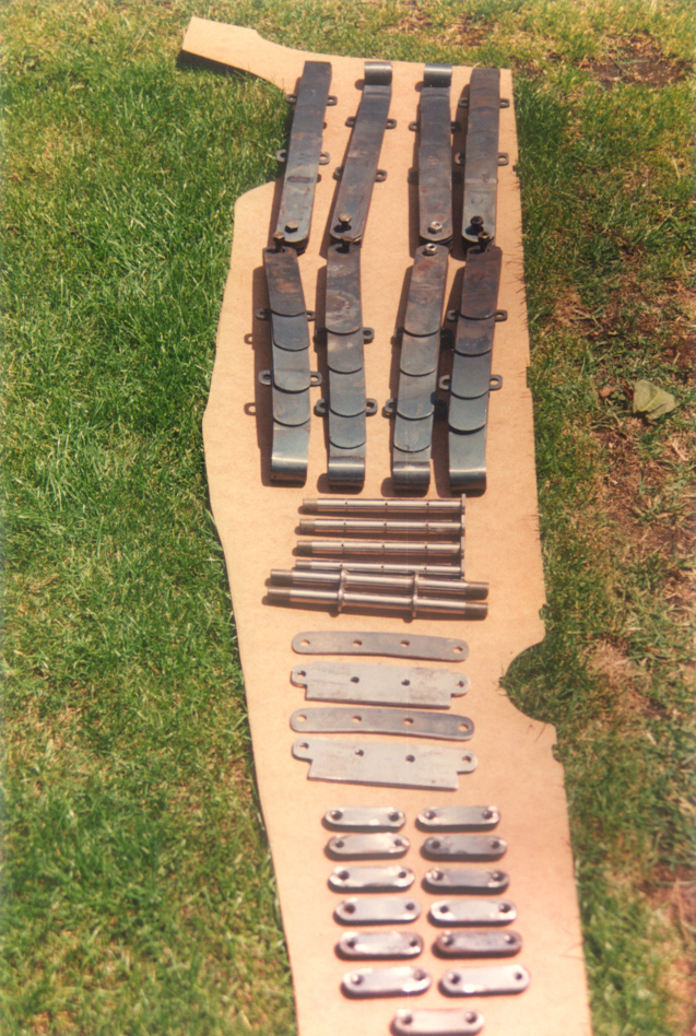 This set of parts includes modified striker plates which bridge across the underside of the leading and trailing springs and prevent the steering lock-up accident. |