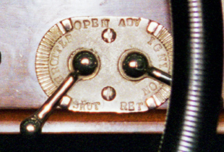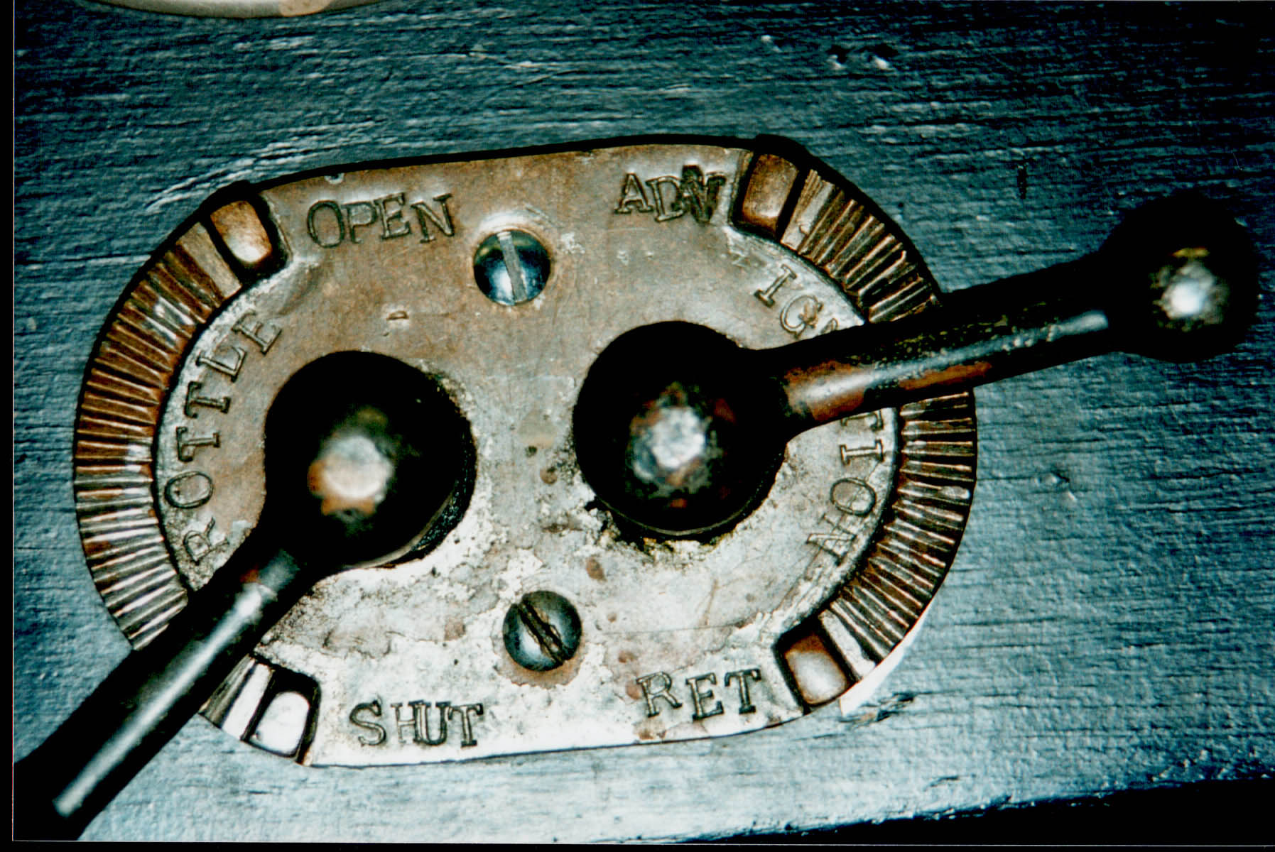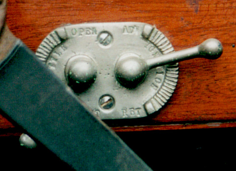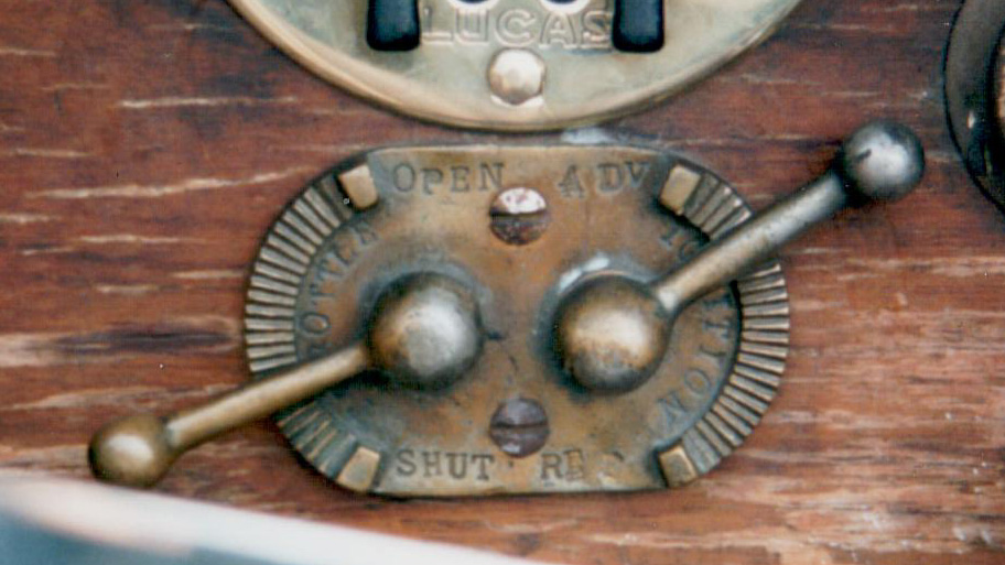 This is a devilish device, crudely made and difficult to adjust properly. When Alvis redesigned the FWD for the 1928 Ulster TT, they introduced a flexible joint into the steering column, which meant that the hand throttle and ignition control could no longer be located on the steering wheel centre. They were therefore placed on the dashboard, and this item is the result. Restorers of the future will have to go to a great deal of trouble to reproduce the standard of lettering found in these examples.