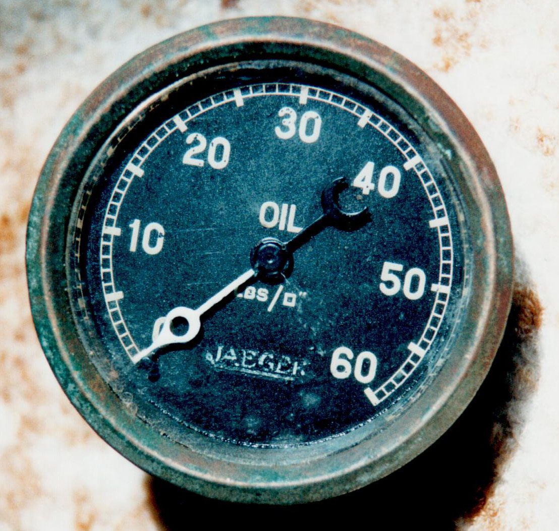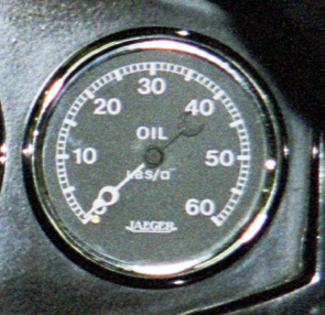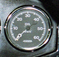 There is a high degree of consistency about the type of oil gauge that was originally fitted. This was a Jaeger instrument with 60mm body, and reading to 60 (possibly 100) psi.